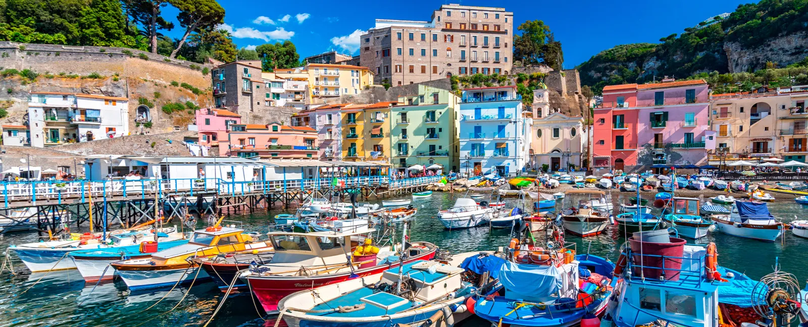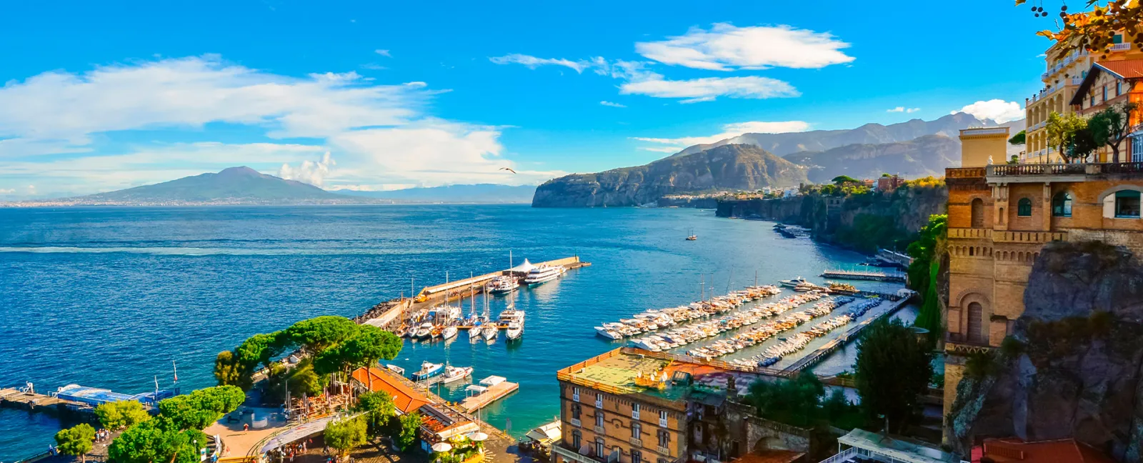 Admirez la baie de Naples depuis les falaises de Sorrente et flânez dans son centre historique animé, regorgeant de boutiques d’artisans et de cafés nichés sous les citronniers.
