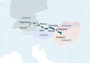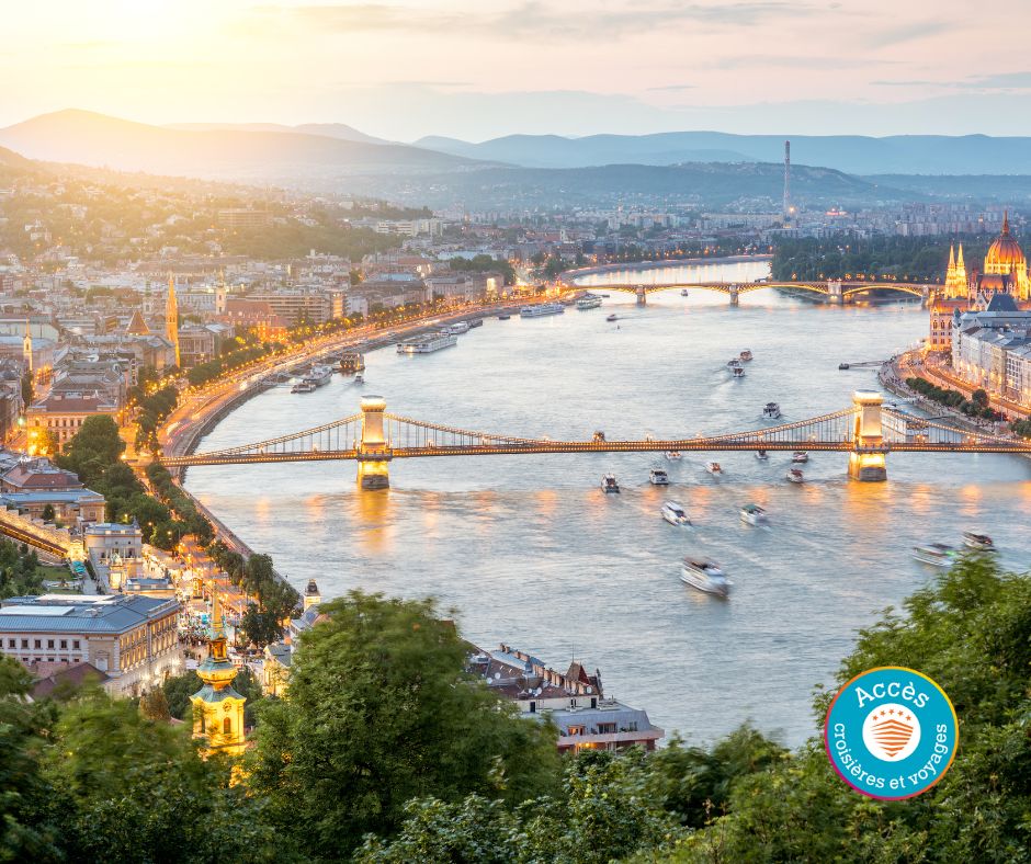 Lors de ce voyage inoubliable de huit jours à travers quatre pays fascinants – l’Allemagne, l’Autriche, la Slovaquie et la Hongrie – découvrez la « Vieille Europe » et bien plus encore, en naviguant le long du Danube et ses magnifiques paysages. À bord du luxueux navire Emerald Cruises Star-Ship, embarquez pour une croisière fluviale exceptionnelle au cœur de l’Europe, le long du majestueux Danube. Découvrez de magnifiques capitales, telles que Vienne, Bratislava et Budapest, ainsi que de charmantes petites villes et laissez-vous émerveiller par une myriade de paysages à couper le souffle. Un des points forts de la croisière est la traversée de l’envoûtante vallée de la Wachau en Autriche, classée au patrimoine mondial de l’UNESCO. Vous y découvrirez des trésors cachés, comme une ancienne abbaye abritant de rares manuscrits médiévaux, et vous vous émerveillerez devant de somptueux palais baroques et des monuments historiques célèbres. L’immersion culturelle locale sera totale : vous serez accueillis chez une famille slovaque chaleureuse et vous assisterez à un concert de musique traditionnelle bavaroise et à un spectacle folklorique hongrois. Avec Emerald Cruises, vous aurez également la possibilité de participer à une excursion active, qui offre une perspective unique sur chacun de vos ports d’escale, notamment des balades à vélo le long des rives pittoresques du Danube et des randonnées jusqu’à des châteaux dignes de contes de fées.