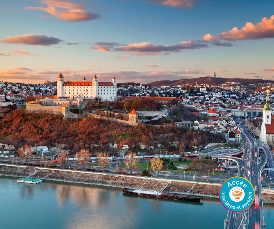 Un charmant ensemble de palais baroques et d’édifices gothiques, témoins d’un passé communiste tumultueux, s’offre à vous lors de votre navigation vers Bratislava, la capitale de la Slovaquie. Profitez d’une visite guidée qui vous dévoilera l’histoire fascinante de la ville, en admirant la splendeur néo-Renaissance du Théâtre national slovaque et du Palais d’été épiscopal.