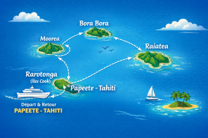 Embarquez pour une aventure inoubliable au cœur du Pacifique Sud et laissez-vous porter par la magie de la Polynésie. Au départ de Papeete, cette croisière de 8 nuits vous invite à découvrir des îles mythiques aux lagons turquoise, aux plages immaculées et aux cultures fascinantes.